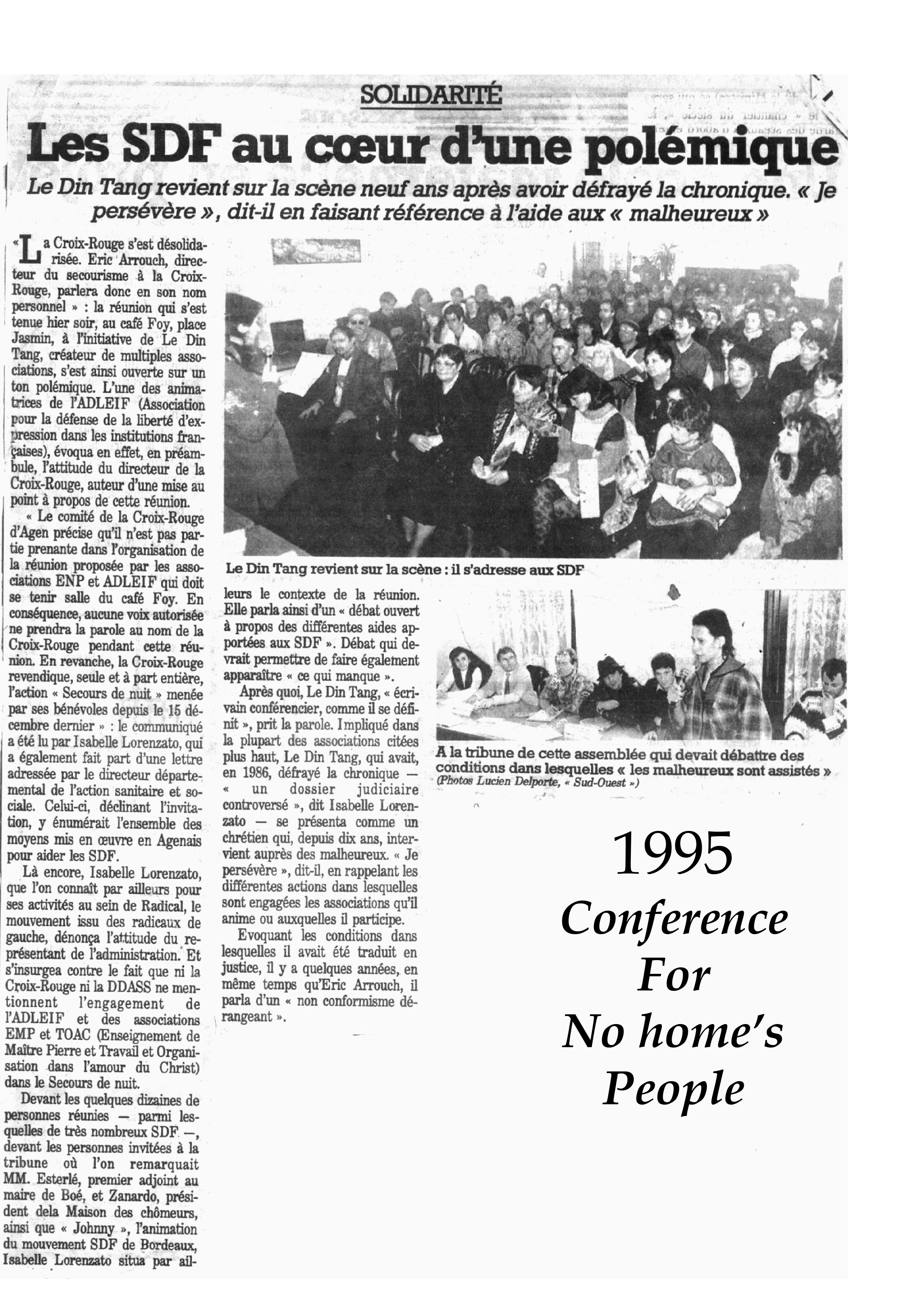Puis pendant 10 ans avec l’aide de ses amis, ce sera des repas offerts aux SDF 7 jours sur 7, place du pin à Agen.Robert Lé Dinh
